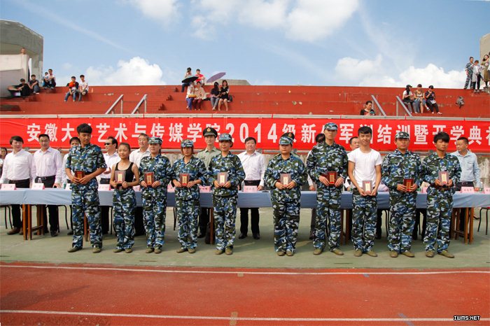 荷花映日笑迎八方学子,丹桂飘香共祝美好未来。9月28日上午,安徽大学艺术与传媒学院2014级新生军训结训暨开学典礼在体育运动场隆重举行。学院领导周之虎、赵枞安、胡献平,解放军电子工程学院二系主任申桂林,学院各系部、各部门主要负责人在主席台就座。各系教务秘书、学生管理秘书,全体班主任及2014级新生参加了此次典礼。典礼由副院长胡献平主持。