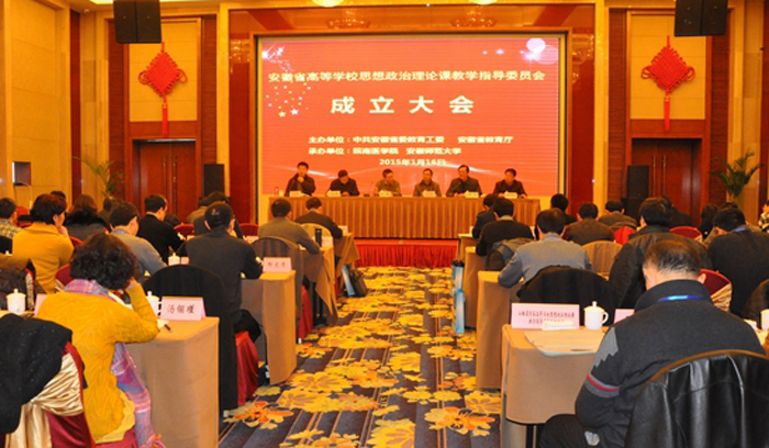 2015年1月16日,安徽省高等学校思想政治理论课教学指导委员会成立大会在芜湖召开。大会由省委教育工委、省教育厅主办,皖南医学院思政部和安徽师范大学政治学院承办。首届全省高校思想政治理论课教学指导委员会49名参加会议。省委教育工委副书记江春出席会议并讲话。