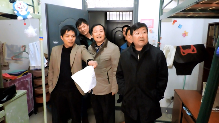 周之虎书记在进门前,首先敲门示意,在得到学生允许后,再进入宿舍,表现了对学生的充分尊重。进门后,周书记和学生们亲切交流,询问学生家庭所在地是否较远,来校交通是否方便,以及室友们是否都已来校等情况。同学们看到周书记亲自前来看望,很是惊喜,他们认真回答了周书记的每个问题。
