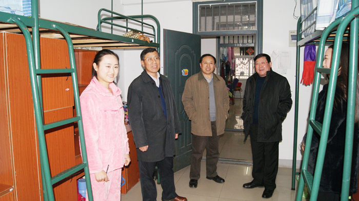 3月12日下午,安徽大学党委书记李仁群、校督导员杜先能在校党委常委、教务处处长薛照明,教务处副处长刘德萍的陪同下,到我院调研指导开学工作。