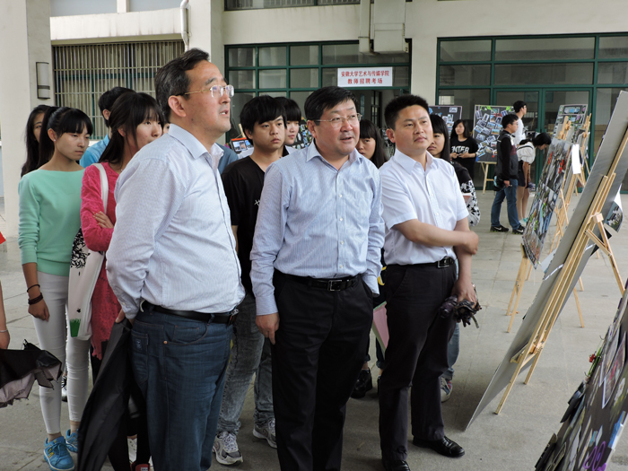 5月15日至21日,传媒系14电脑艺术设计专业34名学子的皖南采风摄影展在校园内如期开展。院党委书记、院长周之虎及院综合办公室副主任吴孔铎,教务处副处长、传媒系负责人韩大国等系部领导观看了展览。