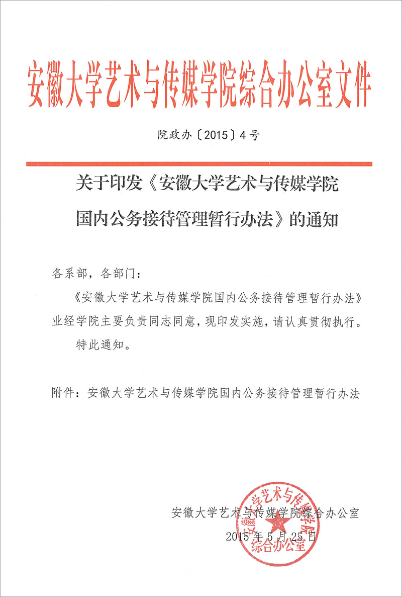 关于印发《安徽大学艺术与传媒学院国内公务接待管理暂行办法》的通知
