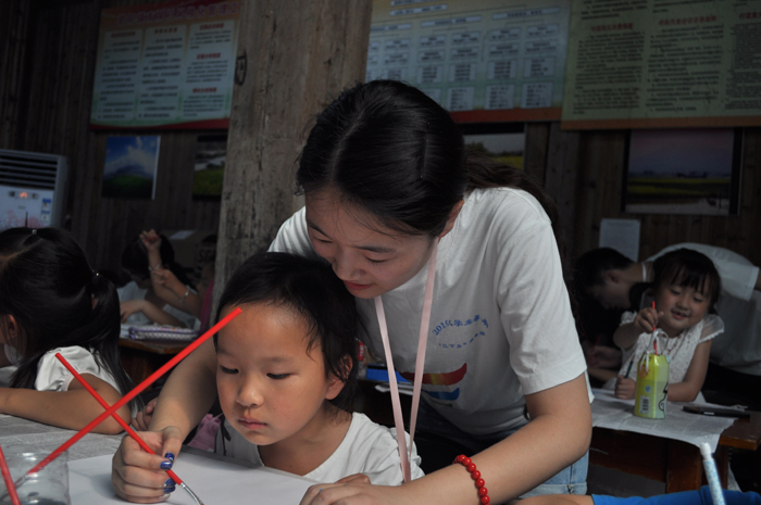 经过一天的相处,我院“三下乡”服务团成员俨然已经和南屏村的30多位留守儿童热闹地打成了一片,“会画画的姐姐”、“弹吉它的帅哥哥”成了孩子们口中对志愿者们亲切又带着点崇拜的称呼。