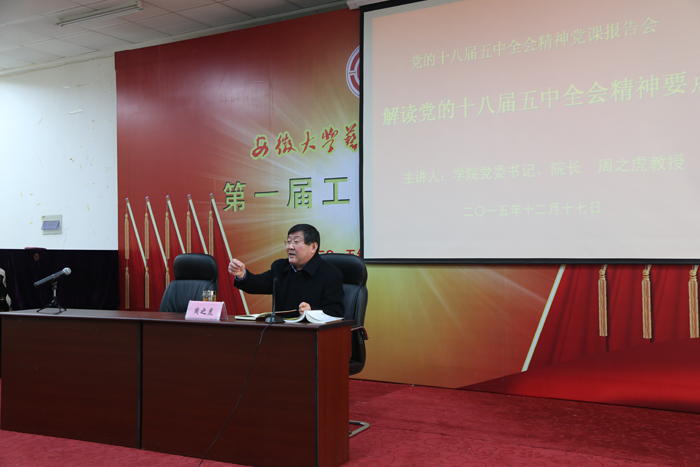 根据《学院学习贯彻党的十八届五中全会精神工作方案》安排,12月17日下午,学院召开党课报告会,学院党委书记、院长周之虎教授作党的十八届五中全会精神辅导报告。