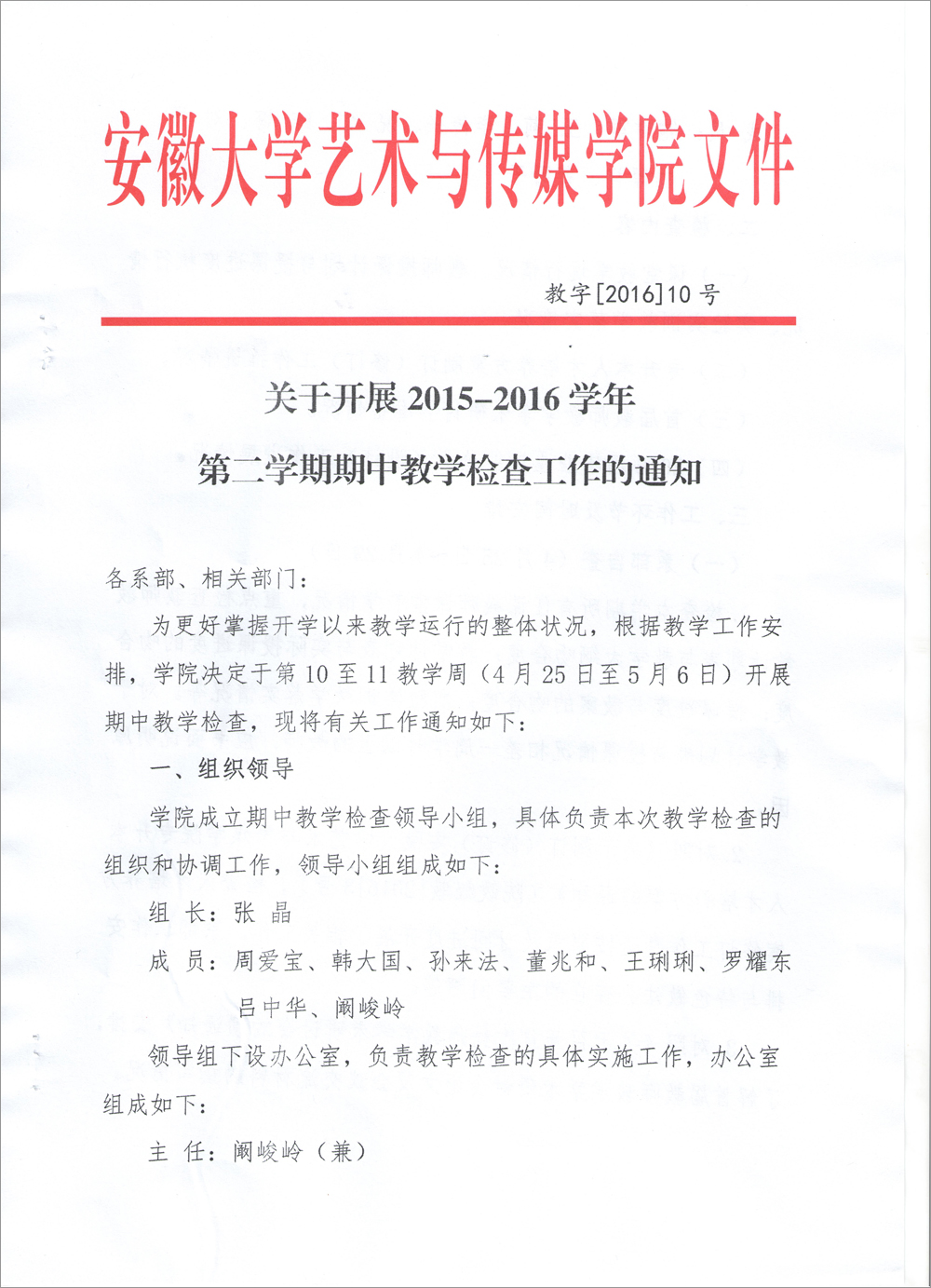 关于开展2015-2016学年第二学期期中教学检查工作的通知
