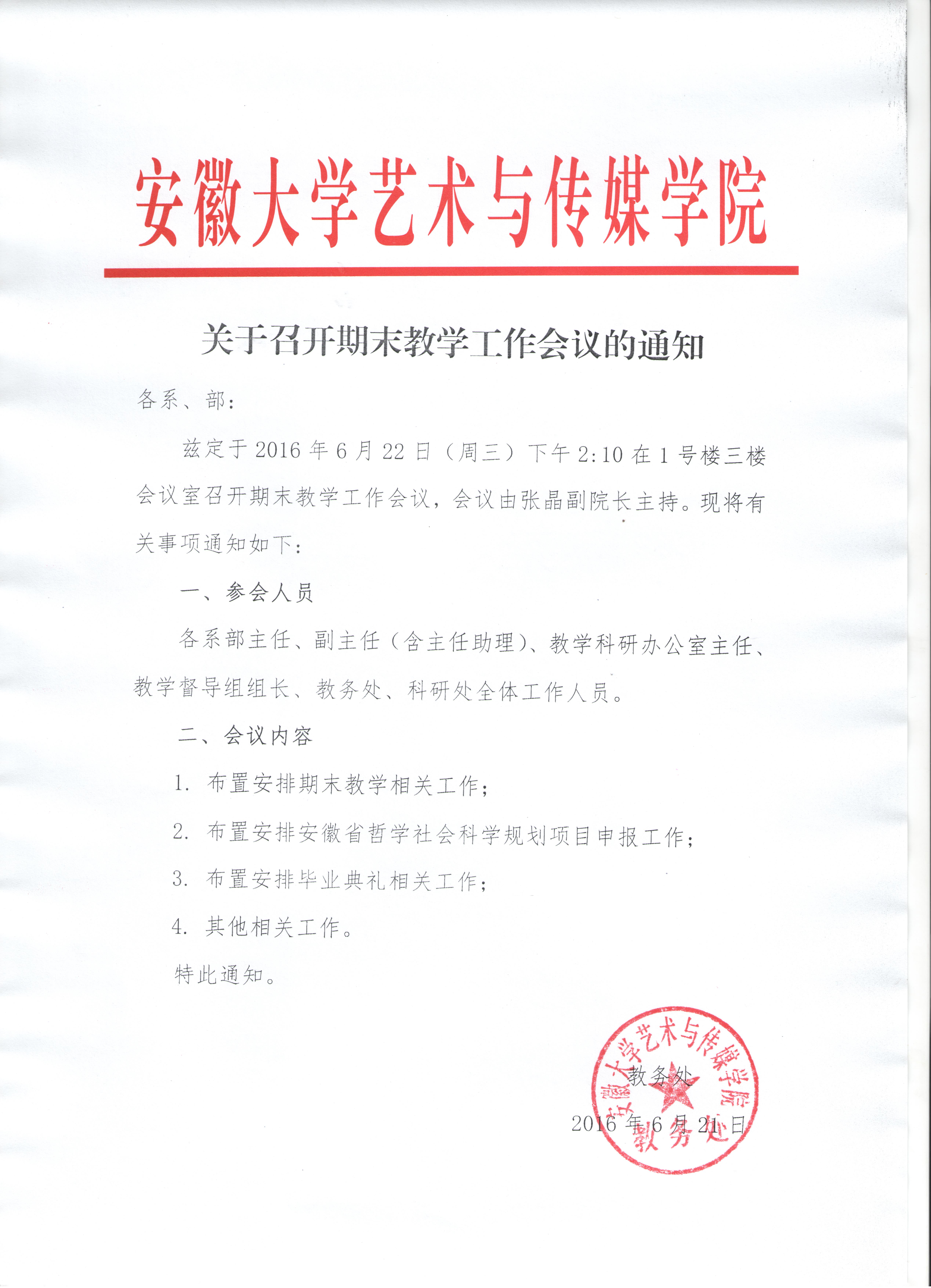 关于召开期末教学工作会议的通知