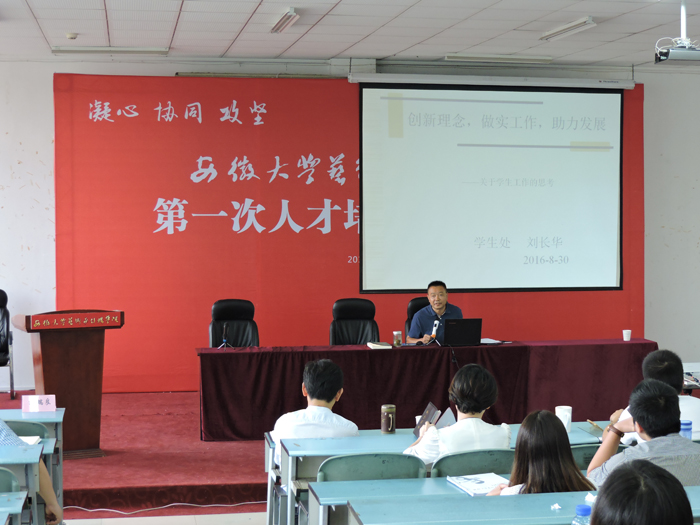 学工部(学生处)刘长华处长做了“创新理念,做实工作,助力发展”的专题辅导,要求新进辅导员、教师尽快熟悉学院、学生,努力做一名合格的辅导员。