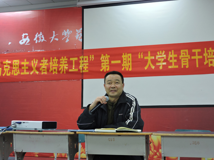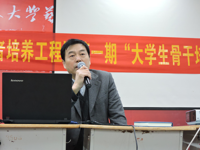 开班仪式上,赵枞安教授为本次培训班致词,他向大家介绍了马克思主义的基本原理,强调了青年学习马克思主义理论的意义,他指出“作为青年一代的大学生要为实现中国梦而奋斗,掌握科学的世界观和方法论对成长成才很重要,同学们应该学好马克思主义,用先进理论指导专业学习和人生发展”。