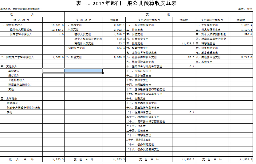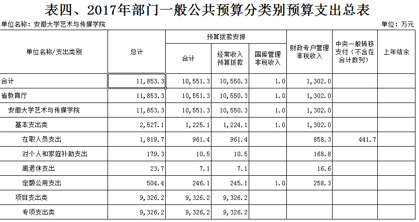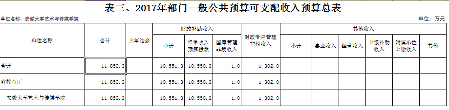 安徽大学艺术与传媒学院2017年部门预算