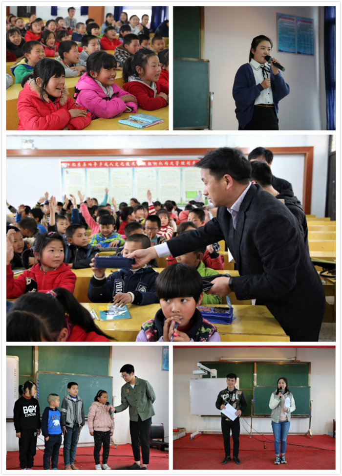 下午两时许,播音专业的马时雨同学以《猴吃西瓜》的寓言小故事开场,别具一格的表演方式引的孩子们哈哈大笑,现场气氛轻松热烈。刘光光和王蓉同学朗诵的《我骄傲 我是中国人》使得台下小观众的民族自豪感倍增。在颇具新意的“普通话趣味小课堂”环节,席国民同学从学习自我介绍入手,带领孩子们练习普通话发音,希望他们大声、勇敢、自信。随后,新闻播音系的老师与孩子们玩起了互动游戏。精彩的文艺演出后,新闻播音系党总支把为希望小学的孩子们精心准备的文具等一一送到他们手中,鼓励他们要以优异的成绩回报社会。