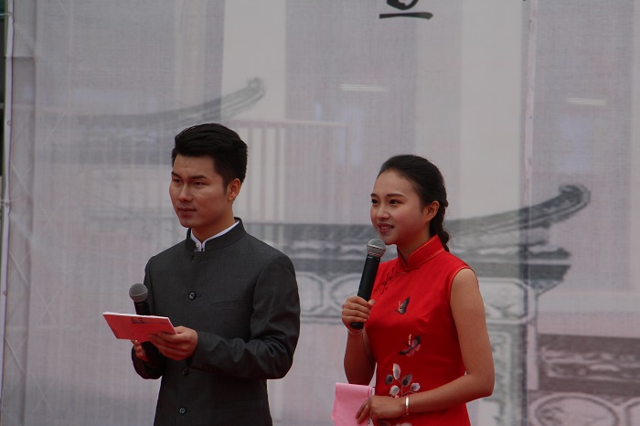 最是一年春好处,传统文化进校园。4月10号中午,由共青团安徽大学艺术与传媒学院委员会和共青团安徽广播影视职业技术学院委员会联合主办的第三届“传媒情、艺术梦”校园大学生文化艺术节开幕式暨“礼敬中华传统文化”体验日活动在校园七棵树广场隆重举行。安徽大学艺术与传媒学院党委副书记沈端良,戏剧影视系党总支书记董兆和,学生处处长刘长华,财务处处长吕中华,安徽礼仪文化协会会长刘维玉,安徽省礼仪文化协会执行秘书长徐鸿健等领导和嘉宾出席了本次活动。