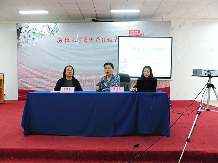 仪式结束后,牛育民为我院师生作题为“中国当代艺术家”的学术讲座,深入浅出地梳理了中国当代油画、水墨画、篆刻、雕塑、书法、摄影等领域的大家及其代表作品,还详细介绍了抽象艺术、当代新兴艺术等领域的新发展、新趋势,辅之以丰富而精美的图片资料,讲解生动,内涵丰富。在讲座中,牛育民还结合了自己的创业经历和多年的艺术品投资管理工作经验来谈,以自身经历为同学们树立信心,鼓励大家注重培养自己的艺术素养和审美能力,大胆的去尝试和创新,也要在为自身专业知识打下扎实的基础之后,多去学习和开拓视野。讲座结束后,师生们纷纷表示受益良多。(图/罗守俊 文/赵晨)
