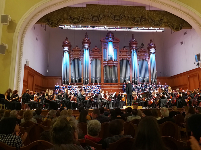 在教学副校长斯鲁茨卡娅的陪同下,访问团一行参观了该院琴房、音乐厅等教学设施。受该校邀请,在柴院大音乐厅聆听了该院钢琴音乐盛会。