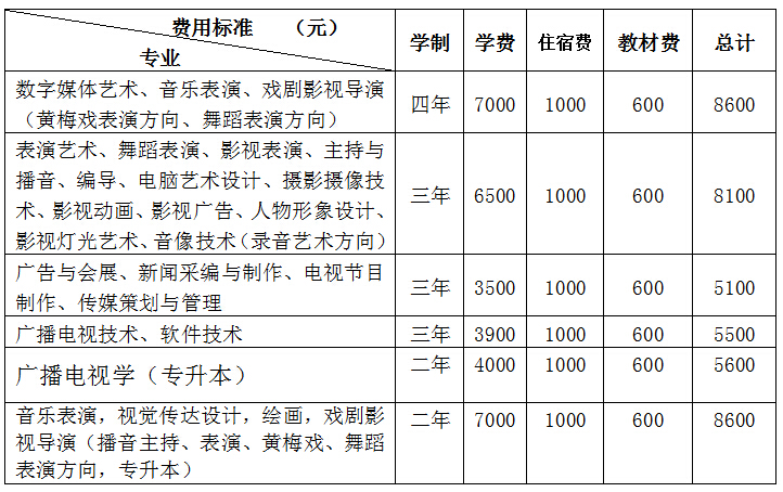 1、所存学杂费总数=学费+住宿费+教材费,各专业学生应交学杂费总额详见下列标准。