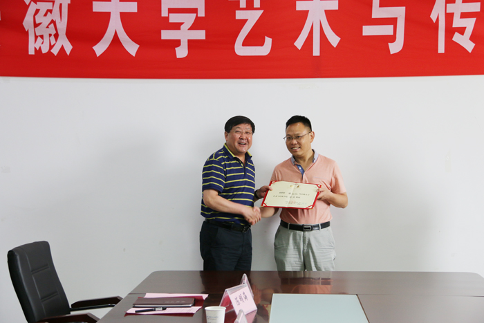 6月27日上午,学院与安徽雅德馨香文化艺术品经营有限责任公司产学研签约仪式暨聘任其董事长、著名收藏家斯劲松先生为客座教授颁证仪式在三楼会议室举行。