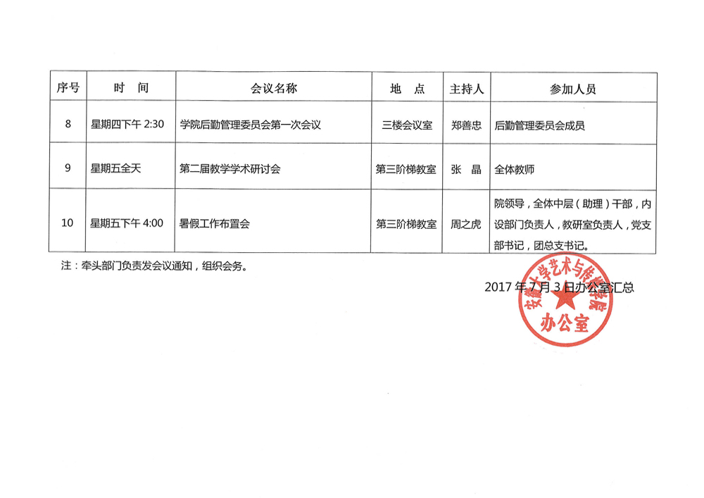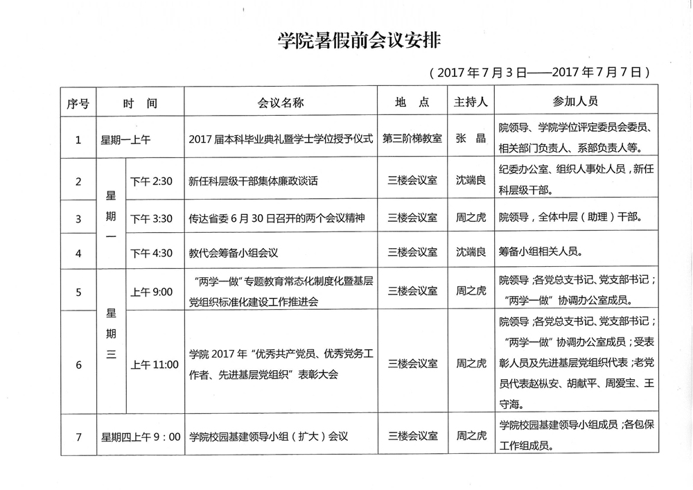 学院暑假前会议安排