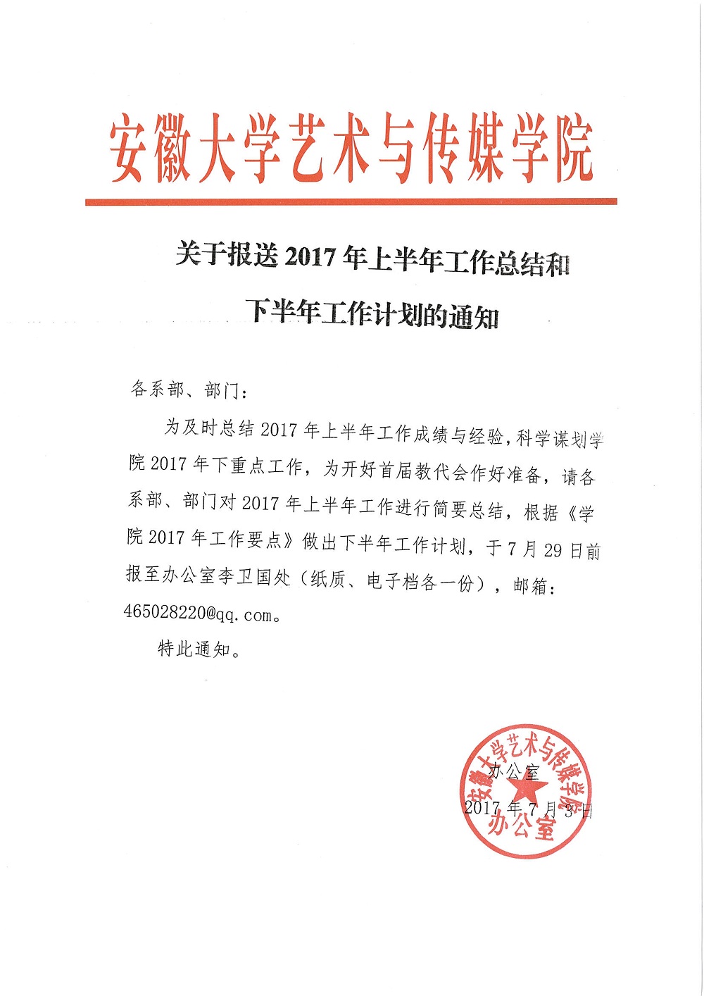 关于报送2017年上半年工作总结和下半年工作计划的通知