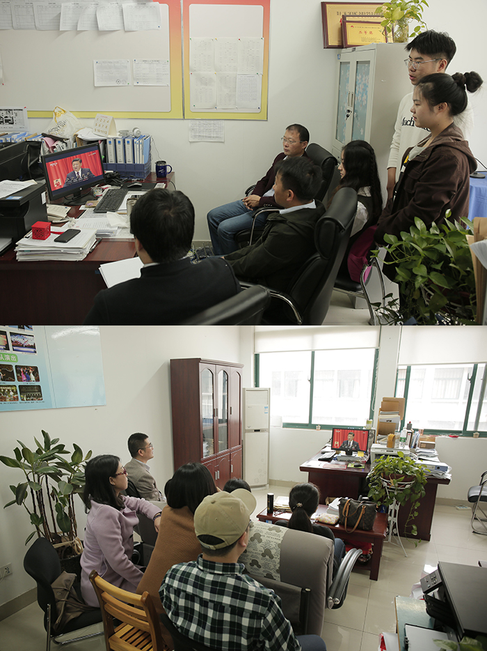 在认真观看开幕式之后,大家纷纷发言,尤其针对报告“不忘初心,牢记使命”这一主题的提出展开热烈讨论。大家一致表示,十九大是全国人民期盼并关注的大事,听完习总书记的报告感到非常激动,鼓舞人心。报告总结了党的十八大以来取得的辉煌成绩,大家对五年来取得的伟大成就感到自豪。报告提出的从全面建成小康社会到基本实现现代化,再到全面建成社会主义现代化强国奋斗目标催人奋进。