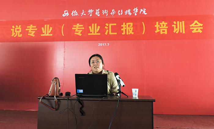 为落实“关于开展第三届青年教师教学基本功竞赛系列活动的通知”要求,加强赛前培训,提升专业教师把握专业的能力,学院特邀合肥学院工业设计专业带头人闫朝华教授于2017年10月27日(周五)下午2:00,在一教二楼第三阶梯教室就如何说专业进行培训。学院全体教师参加了此次培训活动。活动由教务处韩大国处长主持。