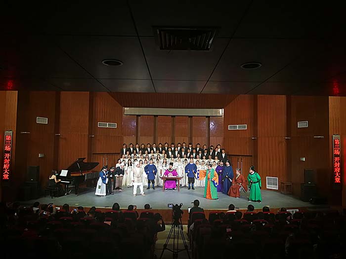 《包青天》以歌剧为载体,创作人民喜爱的艺术精品;以包拯为形象,弘扬公正无私的廉政文化;以警示为导向,呼唤公平正义的法治精神;以展演为手段,提升地方艺术人才的建设水平。合肥师范学院专场演出,既是对歌剧即将在合肥大剧院首次公演的全面检验,又是艺术教育、文艺创作、舞台实践及“产学研”和校企合作成果的集中展示,更是全院师生用实际行动学习贯彻党的十九大精神的集中体现。(文/薛业浩)