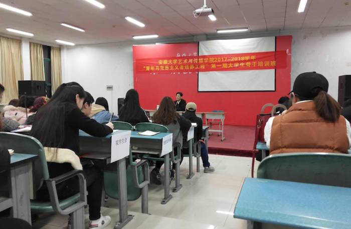 12月7日下午,学院2017-2018学年“青年马克思主义者培养工程”第一期大学生骨干培训班第三次培训在一号教学楼二楼阶梯教室进行。学院党委副书记沈端良为大家作党的十九大精神宣讲,宣讲会由院团委书记陈明主持,学院部分团干部和120余名院、系学生骨干参加了学习。