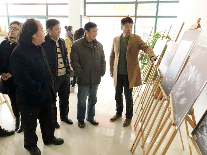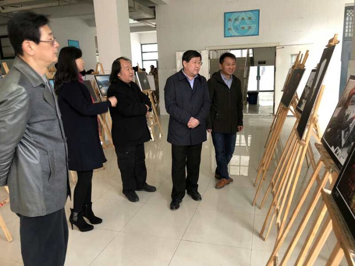仪式结束后,与会领导师生共同参观了摄影展。一幅幅作品主题鲜明,一个个场景令人回味……主题展览内涵丰富,构图完美,契合和完美展现了徽文化的主题。在展出的每一张照片前,周之虎都驻足观看,给出评价,鼓励学生们继续努力,拍出更多更好的作品,以此歌颂伟大的时代,唱响美丽安徽。