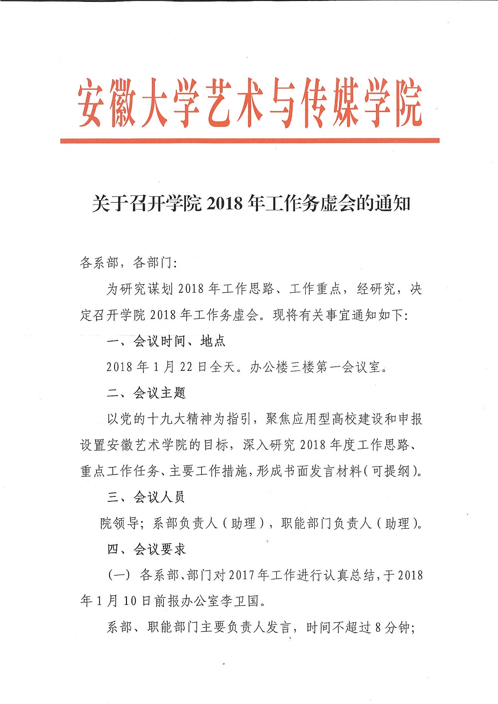 关于召开学院2018年工作务虚会的通知