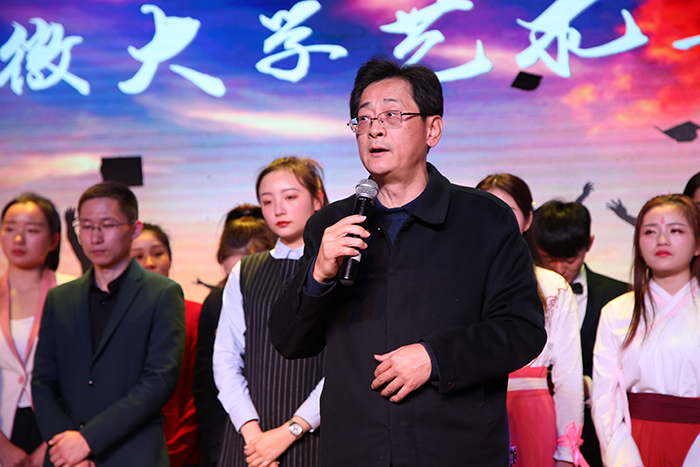沈端良在毕业汇演致辞中说,新闻播音系秉承重实践、重应用的办学模式要持续发扬,毕业生们展现出来的多才多艺令人欣喜,在大家走出校门之际送上了饱含深情的叮咛和祝福。(文/申莹和)