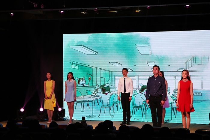 随后的节目《见字如面》则温情满满,3位同学抽取了另外3位同学分别写给老师、同学和自己的一封信进行朗读。信里有欢声笑语、有谆谆教导、有对未来的憧憬;信里还有怀念、有感恩、有遗憾。伴随着《那些花儿》优美的声线,回旋的曲调,沁透着淡淡的忧伤,30位毕业的同学上台谢幕。辅导员杜衎发表感言,回忆相处一年半的点点滴滴,同学们不禁在舞台上红了眼眶。