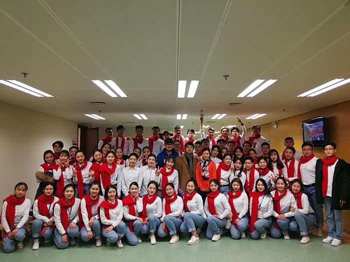 “今日片片绿叶衬,明朝鲜花朵朵红。”1月28日晚,2018年安徽卫视春节联欢晚会在安徽广播电视台3600平方米演播大厅录制,学院青年合唱团受邀参加节目录制,参与表演歌曲联唱《歌声飘过四十年》,先后演唱并表演了《年轻的朋友们来相会》《在希望的田野上》《东方之珠》《站起来》《国家》等五首歌曲。七十余名同学朝气蓬勃、青春洋溢,统一身着白衬衫、蓝牛仔、白球鞋、红围巾,优美的旋律从心底流出,和谐的歌声在演播厅回荡,表达江淮儿女对改革开放四十年以来所取得的成就由衷地赞美。