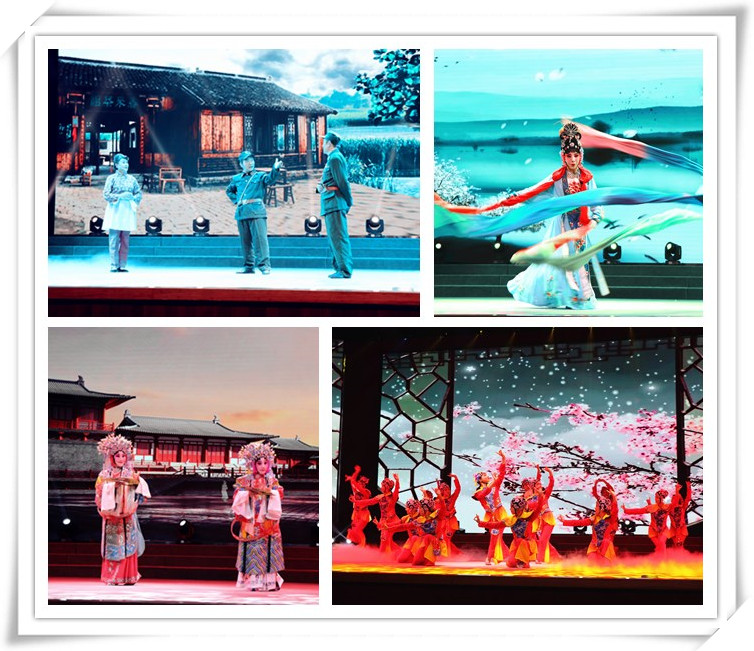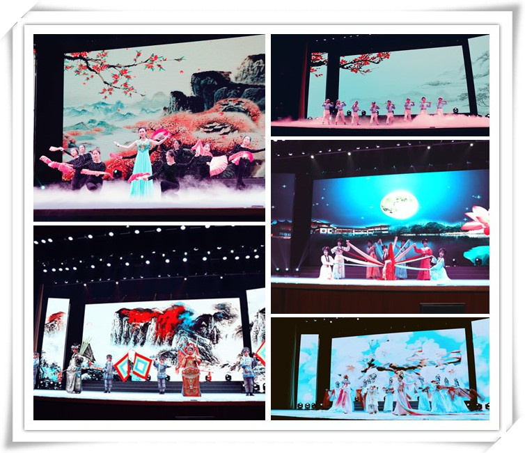本次汇报演出分为“戏苑春芽初绽”和“戏曲百花竞放”两个篇章。我院音乐舞蹈系学生表演的《俏花旦》,用欢快的舞姿拉开了演出的序幕。上篇主要展现“戏曲进校园”项目中涌现出来的肥东县中小学戏曲社团和优秀教师们的风采。无论是店埠学区中心校“荷之韵”梨园社表演的《卖水》,还是圣泉中学“泉韵”戏剧社团表演的《江山无限》,无论是肥东县经开区中心学校庐剧社表演的《十八里相送》,还是尚真花园小学黄梅戏社团的黄梅戏联唱,都让人从孩子们稚嫩而又不失专业的表演中看到戏曲文化的传承。下篇“戏曲百花竞放”主要内容为“戏曲进校园”活动指导专家的技艺展示和进校园演出的优秀节目展示。安徽省徽京剧院国家二级演员王法洋表演的《天女散花》,其唱腔由慢而快,绸带舞忽慢忽快,让现场的观众叹为观止。我院戏剧影视系教师徐向荣、董兆和、周爱宝将《沙家浜·智斗》演绎的惟妙惟肖。国家一级演员、中国戏剧梅花奖获得者王丹红和她的女儿李心煜联袂表演的徽京荟萃《贵妃醉酒》唱腔优美,技艺高超,让人拍手称绝。