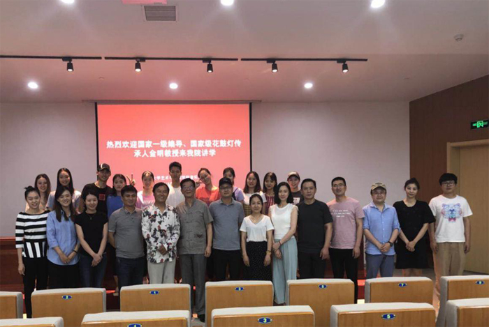 6月6日下午,国家一级编导、国家级花鼓灯传承人、教育部高级专家、安徽花鼓灯艺术研究会会长金明教授应邀在我院举办了题为《魂系淮水舞花鼓》的专题讲座。讲座由音乐舞蹈系副书记李传兴主持,一百余名师生聆听了讲座。