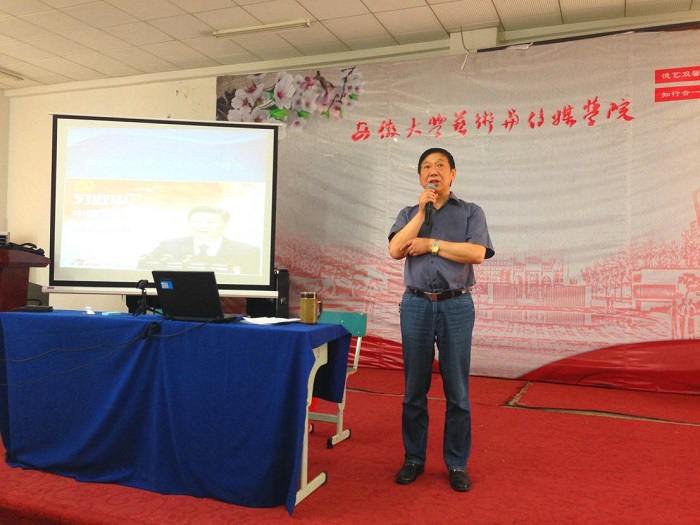 最后系主任孙来法从“砥砺奋进的五年”导入,重点讲述全面从严治党对民主政治建设的重要性,从加强全面从严治党、党的政治建设、维护宪法权威保障三个方面展开阐述。他提倡,作为音乐舞蹈系的学生,一方面要认真学习专业知识、巩固自身技艺;另一方面要懂得明晰思路洞察时势,做一位合格守法、爱国爱党的有为大学生,脚踏实地,继续追求不断进步。
