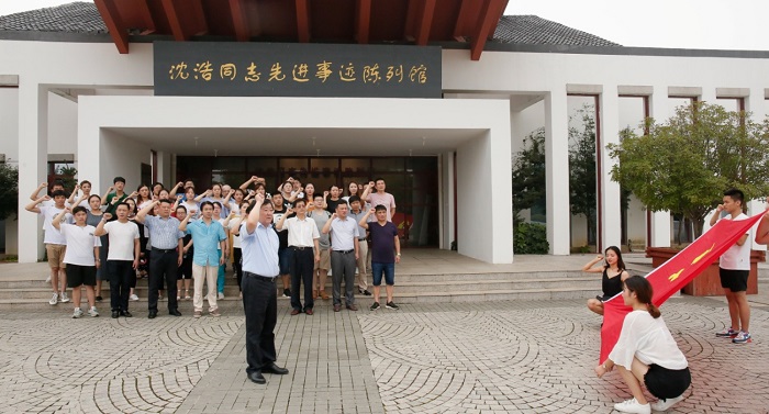 在沈浩同志先进事迹陈列馆前,周之虎带领大家面对党旗,重温入党誓词,坚定全体党员“不忘初心,牢记使命”的坚定政治信念。