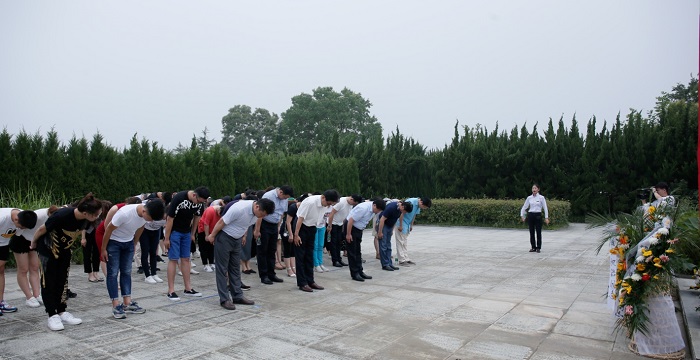 参观中,大家首先来到小岗村公墓,在沈浩同志墓前敬献了花篮。