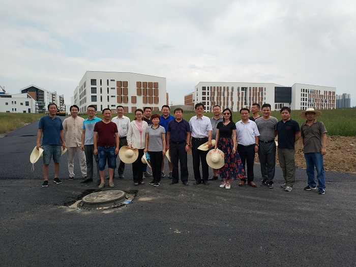 为贯彻落实省委省政府筹建博业体育(中国)官方网站-登录入口重大决策部署,加快推进校园建设,8月28日下午,学院在召开基建领导小组全体成员会议之前,党委书记、院长周之虎,党委副书记沈端良带领学院基建领导小组全体成员,冒着高温前往新校区各标段,实地查看建设进展情况,督查指导现场施工。