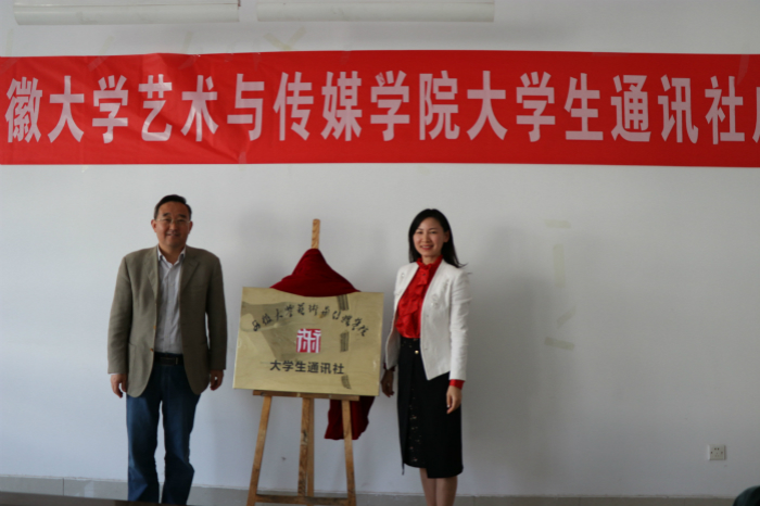 最后,吴孔铎与王琍琍共同为安徽大学艺术与传媒学院大学生通讯社揭牌。