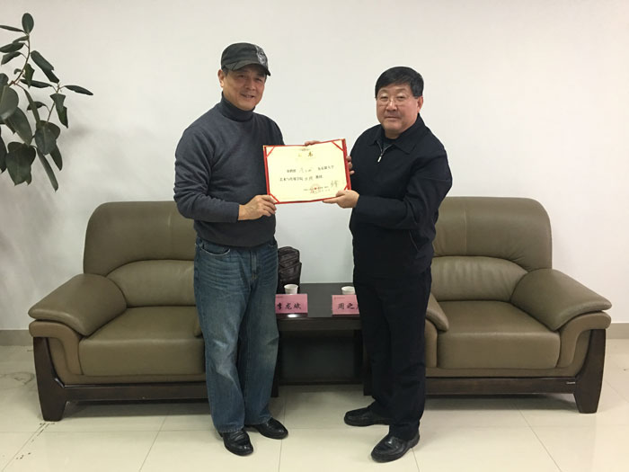 为加强学院师资队伍建设,推进高校内涵式发展,12月10日下午,安徽省徽京剧院原副院长、国家一级演员、安徽省政府参事李龙斌教授正式受聘我院特聘教授。受聘仪式在一教三楼会见室举行,学院党委书记、院长周之虎,副院长张晶、张建华,组织人事处、戏剧影视系相关负责同志参加受聘仪式。