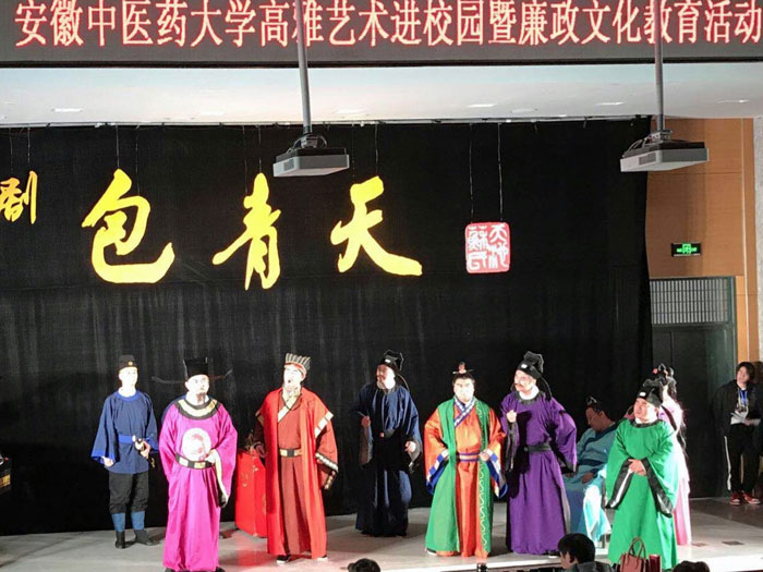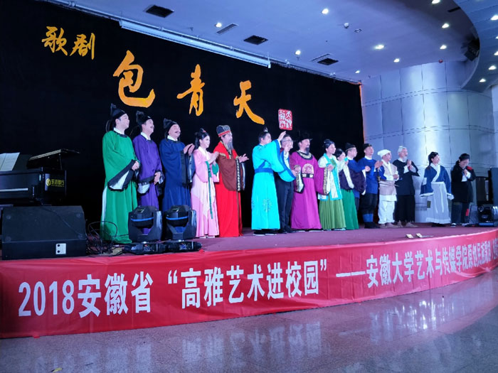 为深入学习贯彻党的十九大精神,根据省教育厅关于“高雅艺术进校园”活动安排,2018年12月26-28日,由安徽大学艺术与传媒学院组织创演的原创歌剧《包青天》成功走进合肥工业大学、安徽中医药大学和安徽农业大学。
