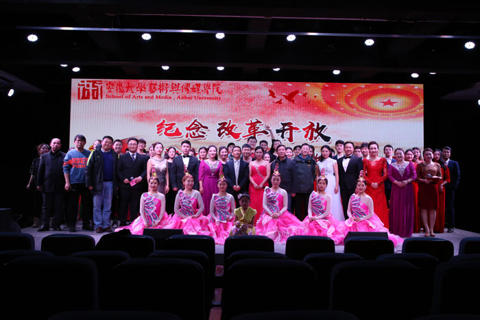 12月28日19时,学院“庆祝改革开放·歌唱美好安徽”2019迎新年晚会在大学生活动中心隆重举行。学院党委委员、副院长张晶和张建华莅临晚会现场,学院各系、各部门负责同志和师生代表一起观看了演出。晚会由新闻播音系老师王雅卓、杜衎主持。