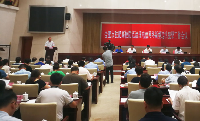 8月28日上午,合肥市驻肥高校防范治理电信网络新型违法犯罪工作会议在市政务中心召开。作为驻肥高校唯一发言代表,学院副院长程世锁在会上作了题为《多措并举,扎实开展防诈骗及不良网贷教育活动》的报告。省委教育工委副书记王佩刚,省委政法委委务会成员江良,合肥市委常委、政法委书记马军出席会议。