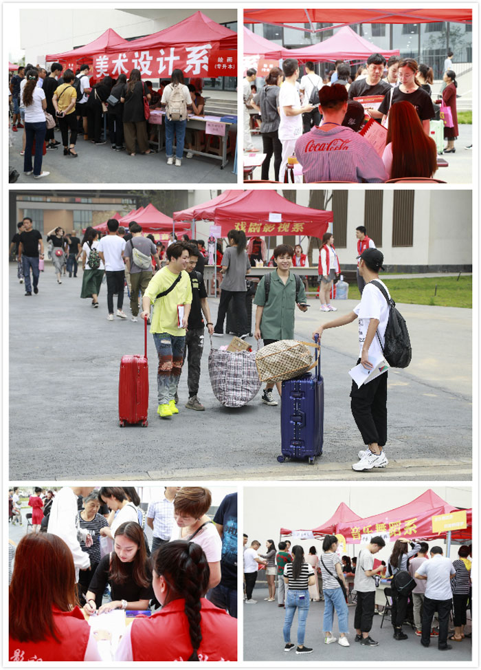 学生处、总务处、财务处、保卫处、团委等职能部门及四系根据学院迎新工作的统一部署,提前筹备了详实的迎新方案和各类入学必备小贴士。在新生报到现场的各顶红帐篷里,绿色通道、提交材料、缴纳学费、领取物品、入住宿舍等各环节都井然有序。各位志愿者或指引路线,或答疑解惑,或帮提行李,时时是笑脸,处处见身影。志愿者张姣姣为新生指示着宿舍方向,表示:“参与迎新工作好像让我更有‘学姐’的样子了,真的很兴奋。希望学弟学妹们加油!”