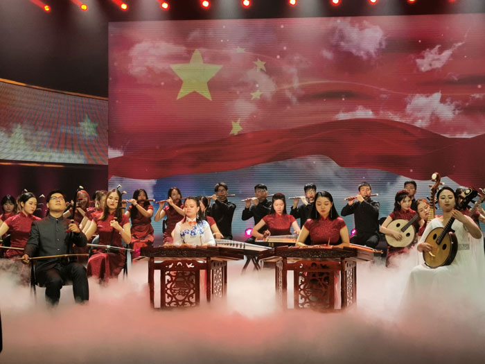弘扬传统文化,坚持文化自信。为庆祝中华人民共和国成立70周年,由安徽广播电视台综艺频道和安徽省民族管弦乐学会联合主办的《国乐有传人》青少年民族器乐音乐会电视展演暨第二届“金杜鹃奖”民族器乐大赛颁奖典礼于9月22日晚在安徽广播电视台演播厅顺利完成录制。学院国乐团在本次演奏会上圆满完成了合奏《我和我的祖国》及竹笛重奏《北京有个金太阳》两首曲目的演出录制工作。