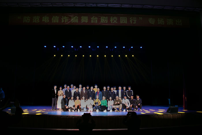 本次演出的工作人员均来自戏剧影视系学生党支部,创演学生绝大多数是学生党员和入党积极分子,指导教师均为中共党员,此次演出也成为我校学生党员在“不忘初心、牢记使命”主题教育中当先锋、作贡献的一个窗口。参演师生以文艺为武器,以舞台为战场,带着打击电信诈骗、警醒广大学生的责任感和使命感,怀着满腔热情,高质量完成了演出任务。(撰稿:陈明 摄影:殷俊 初核:张志云 审定:束舒娅)