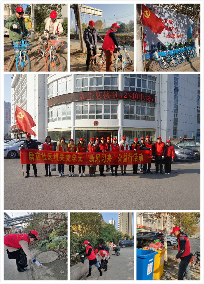 12月3日上午,学院机关党总支联合磨店社区共同开展“新风习来”公益行志愿服务活动,以落实共驻共建方案,认真贯彻文明城市建设要求,切实解决辖区内共享单车“最后一公里”难题,培养高教基地院校学生及辖区群众文明用车的良好习惯,维持道路整洁、有序、安全,进一步优化社区人居环境。