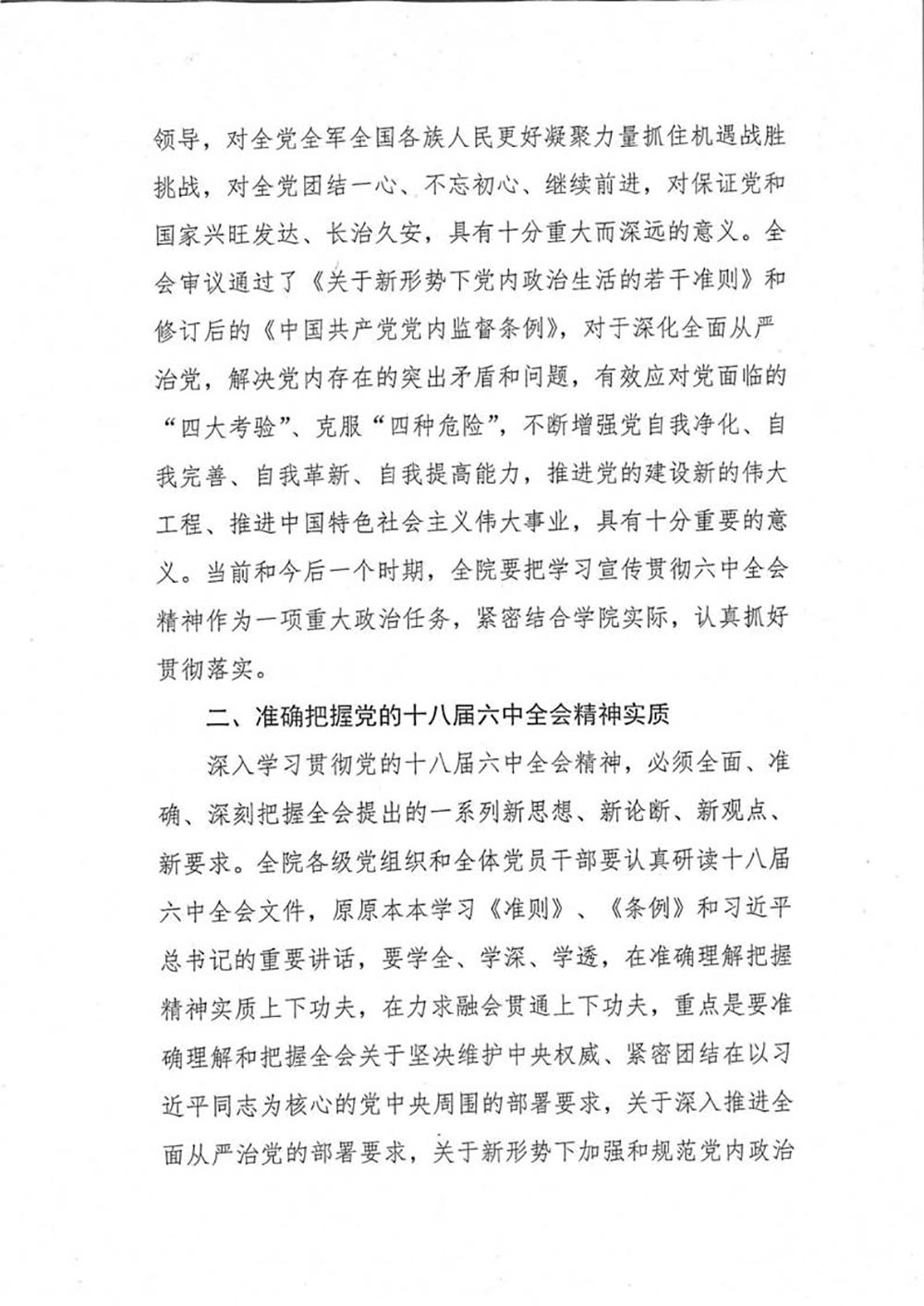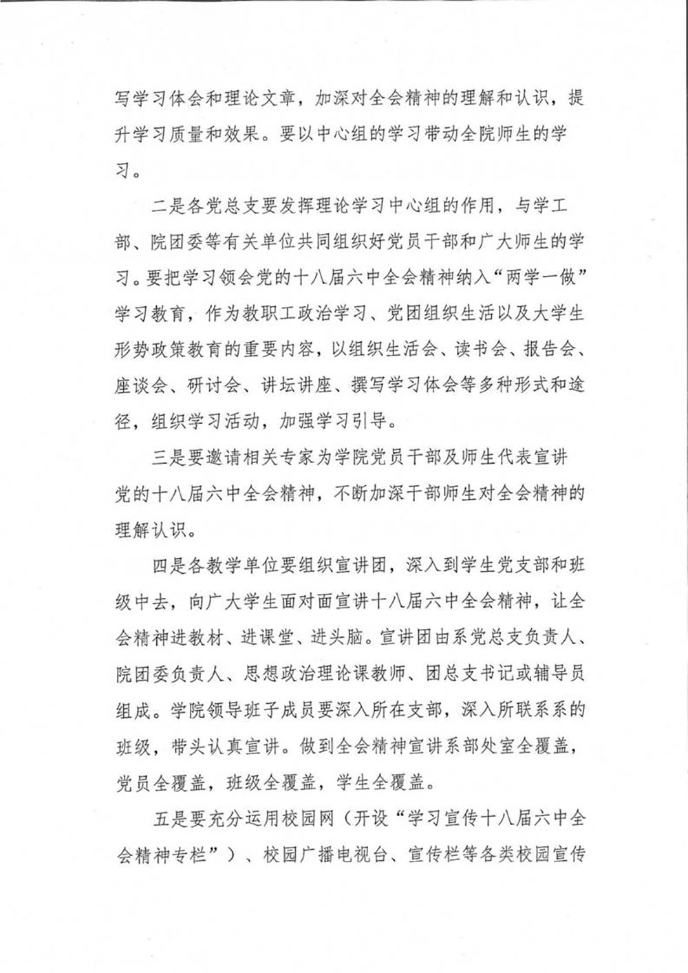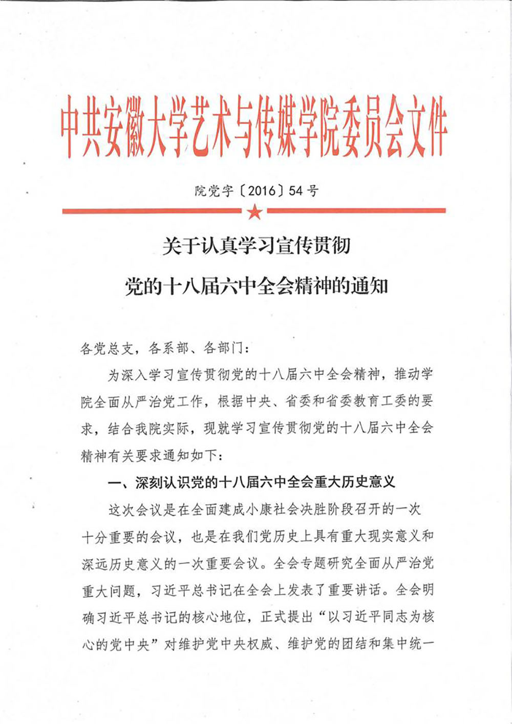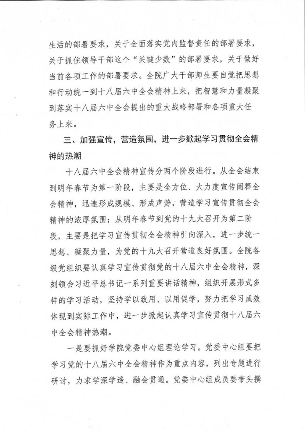 关于认真学习宣传贯彻党的十八届六中全会精神的通知
