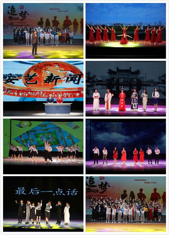 毕业汇演以舞蹈《家有儿女》开场,活力四射,点燃热情。接下来的新闻播报、现场解说、诗歌朗诵、情景剧等节目精彩纷呈,充分展现了播音主持专业学子的基本功。朗诵《谁是最可爱的人》中,三位同学用声音传递感情、传递力量,铿锵有力、掷地有声。一首《我们都是追梦人》触发了在场观众对大学生活的无尽回忆,也将汇演推向了一个小高潮。最后,汇演在《谢谢你,再见》中落下帷幕,毕业生们借歌声深情倾诉对母校的眷恋和不舍。