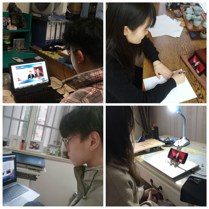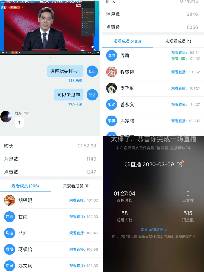 在学院的高度重视下,在教务处与各系的大力支持下,思政部在最短时间内,协同各系辅导员通过钉钉平台创建“思政大课直播群”,组织全体大学生在线观看,并为因当天有课无法收看直播的学生开设“思政大课回看群”,确保实现大学生观看“全覆盖”。