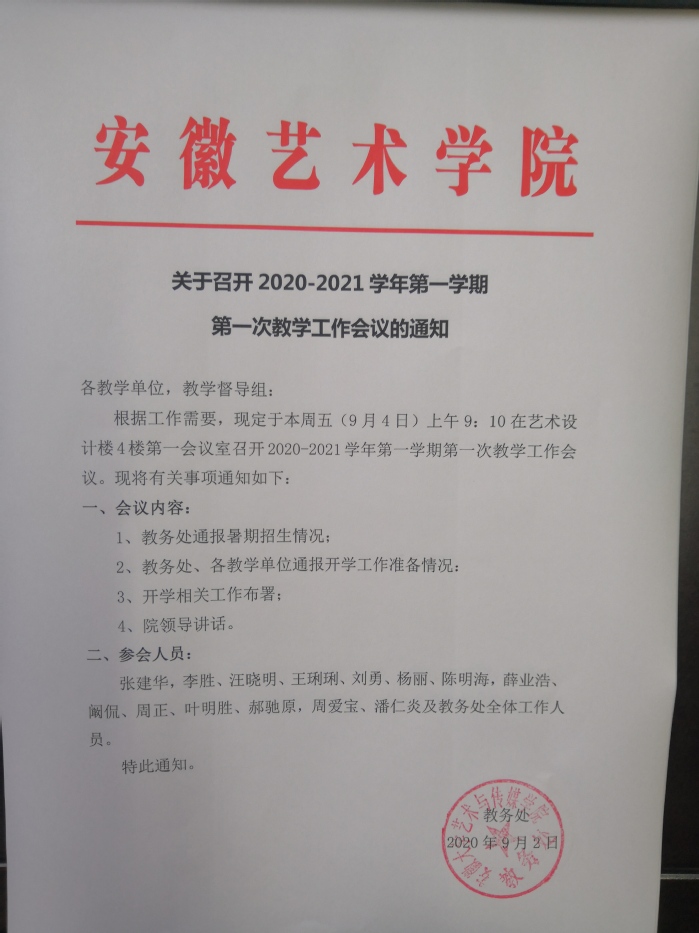 关于召开2020-2021学年第一学期第一次教学工作会议的通知