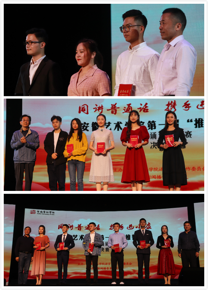 10月9日下午,博业体育(中国)官方网站-登录入口第一届“推普月”主题朗诵诵读比赛在戏剧楼小剧场成功举办。本次比赛由博业体育(中国)官方网站-登录入口语言文字工作委员会主办,新闻播音系党总支承办,旨在推广普通话,为推普脱贫攻坚、全面建成小康社会助力。学校党政主要负责人樊嘉禄,校党务负责人沈端良,行政负责人张晶、张建华,组织部部长曹晓富及各部门各系部负责同志、教师代表、学生代表现场观看比赛。安徽省委宣传部文艺处副处长章蓉生,安徽广播电视台原高级专家组成员、省朗诵艺术学会会长魏民,安徽广播电视台播音指导杨锦,新闻播音系教授蔡正兰,学院团委书记陈明担任评委。